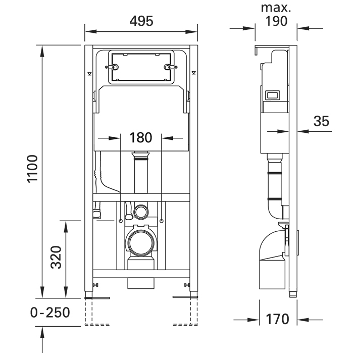 - mit Gewindestangen M12 zur Befestigung vom Wand-WC